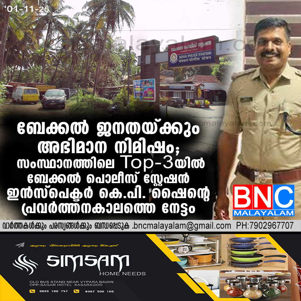 നിയമസംരക്ഷണത്തിലും സമൂഹസേവനത്തിലും കൈകോർത്തു മുന്നേറിയ ബേക്കൽ പൊലീസ് സംസ്ഥാനത്തിന് മാതൃക. ജനങ്ങളുടെ വിശ്വാസത്തെ ആയുധമാക്കി മുന്നേറുന്ന പൊലീസിന്റെ ശക്തി തന്നെയാണ് ഈ നേട്ടം.