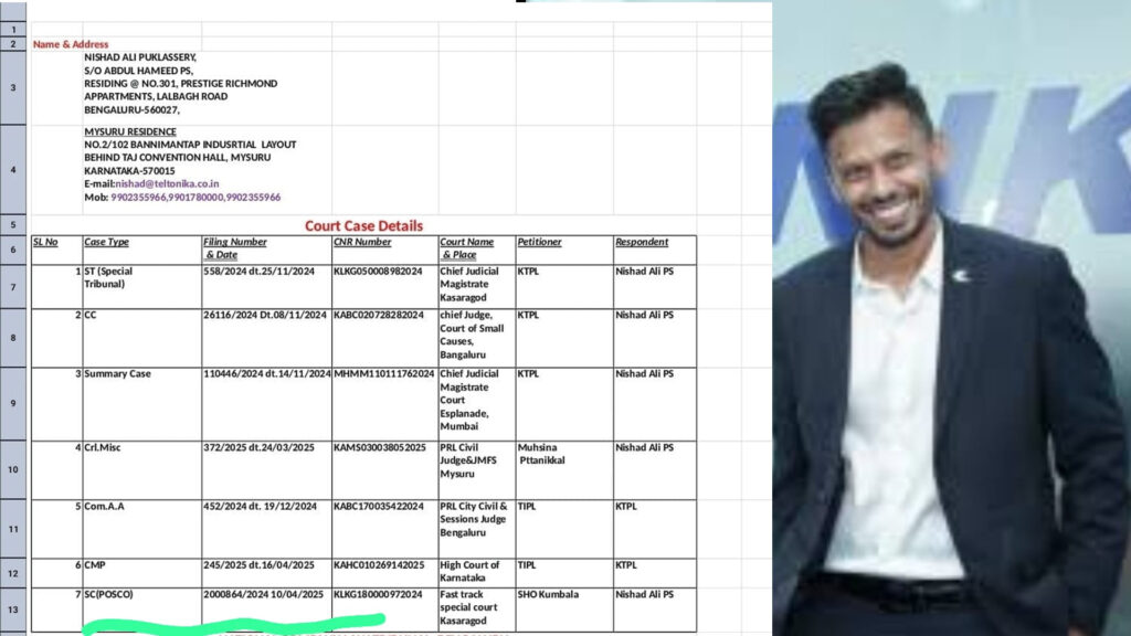 However, the relationship deteriorated following allegations that Nishad Ali siphoned off nearly ₹50 crore from company funds, faced a POCSO case in Kumbla, abandoned his wife and children, and manipulated a friend’s wife. He also served a three-month jail term in a separate cheating case and faces multiple chequebounce cases.